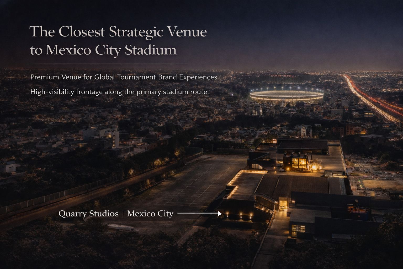 During global tournament season, location defines impact, logistics, and executive convenience. Quarry Studios is positioned just 1.2 miles from Mexico City Stadium, making it the closest large-scale strategic venue for premium activations and hospitality programs. For global brands, proximity is not convenience... it is leverage. Thousands of executives, partners, and media will travel the primary highway route to Mexico City Stadium during match days. Quarry Studios benefits from high-visibility frontage along this route extending brand exposure beyond the activation itself. Your venue becomes part of the journey.