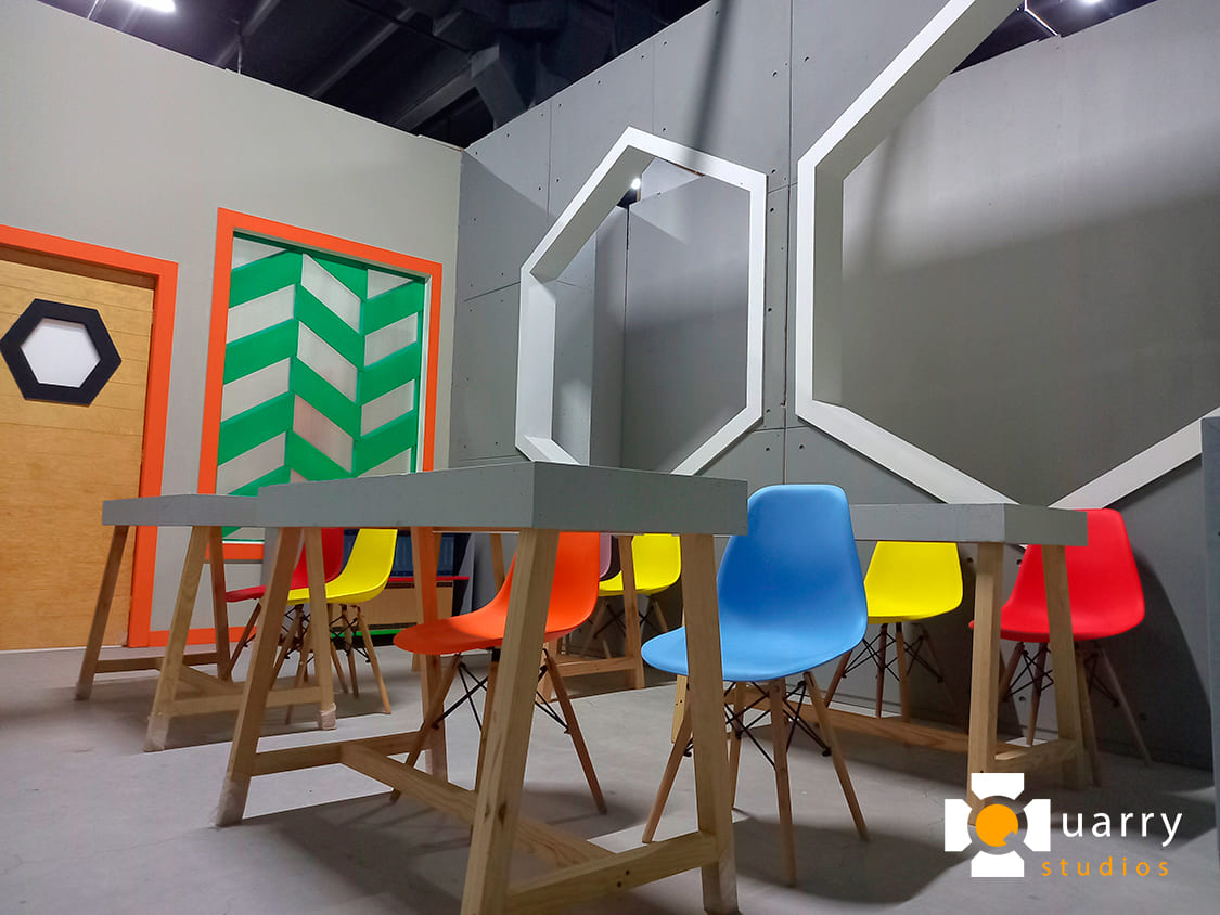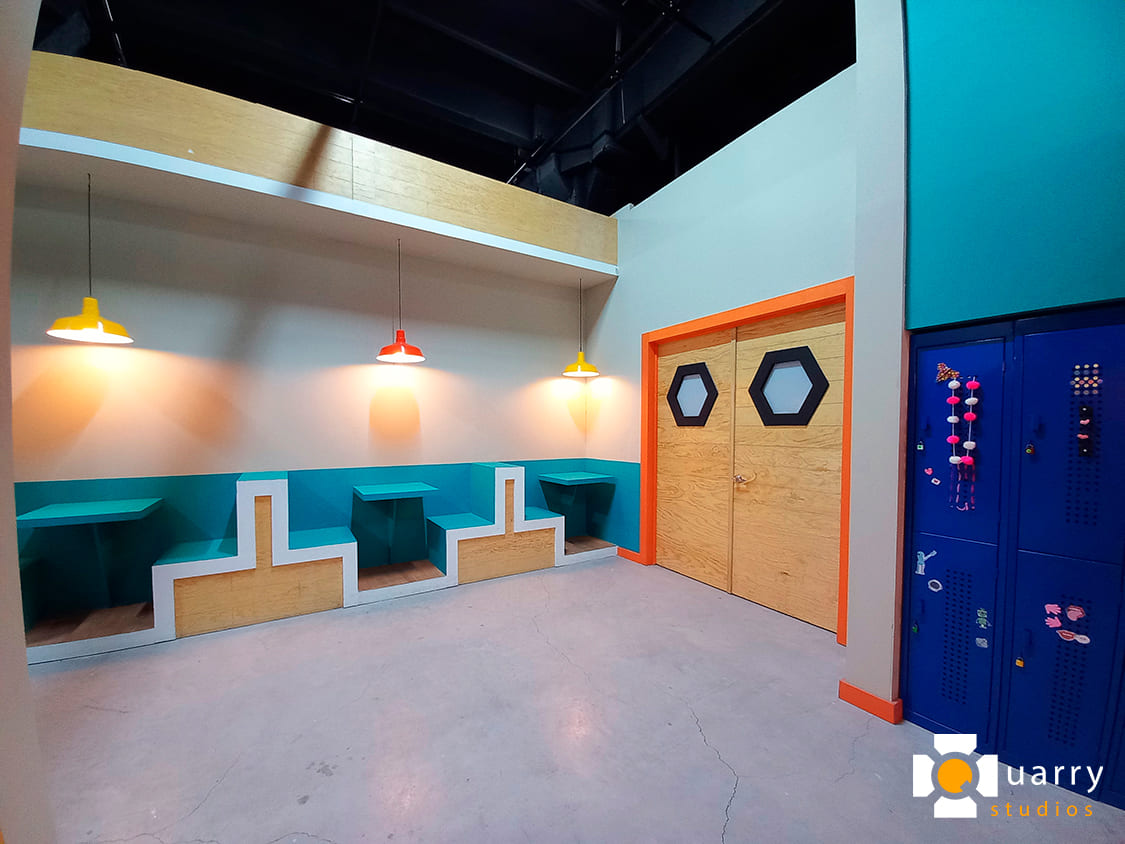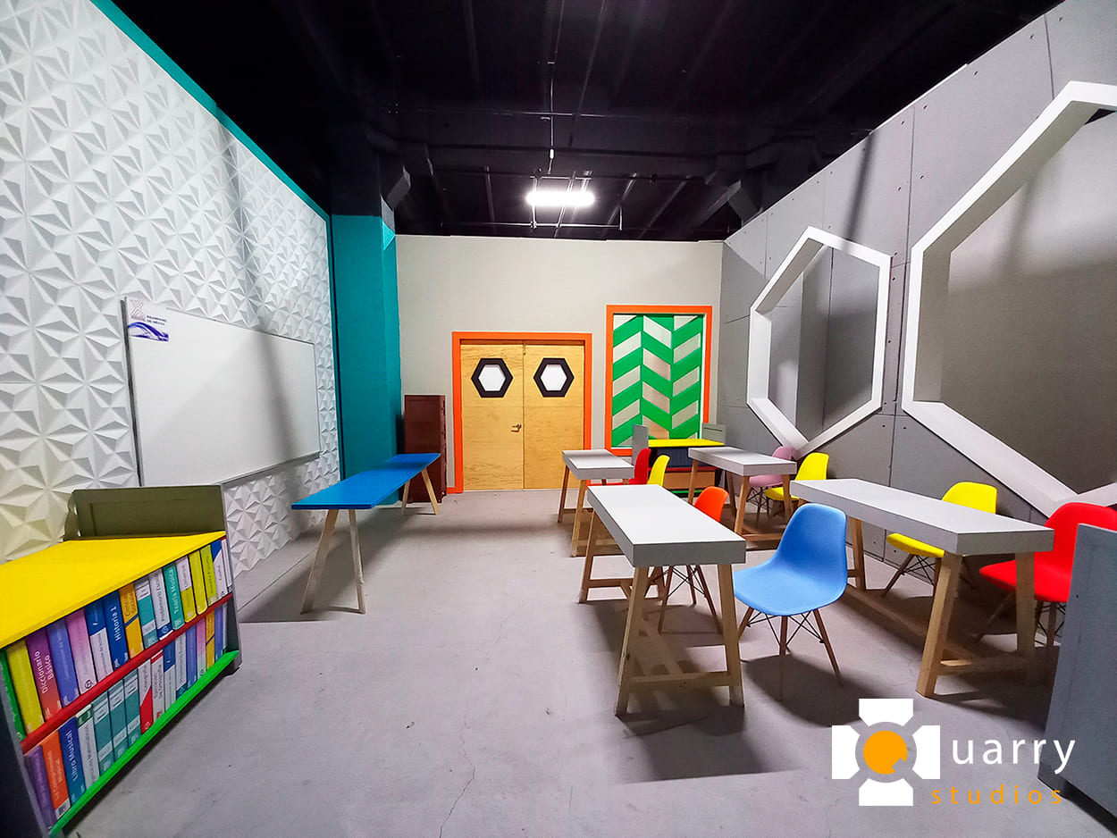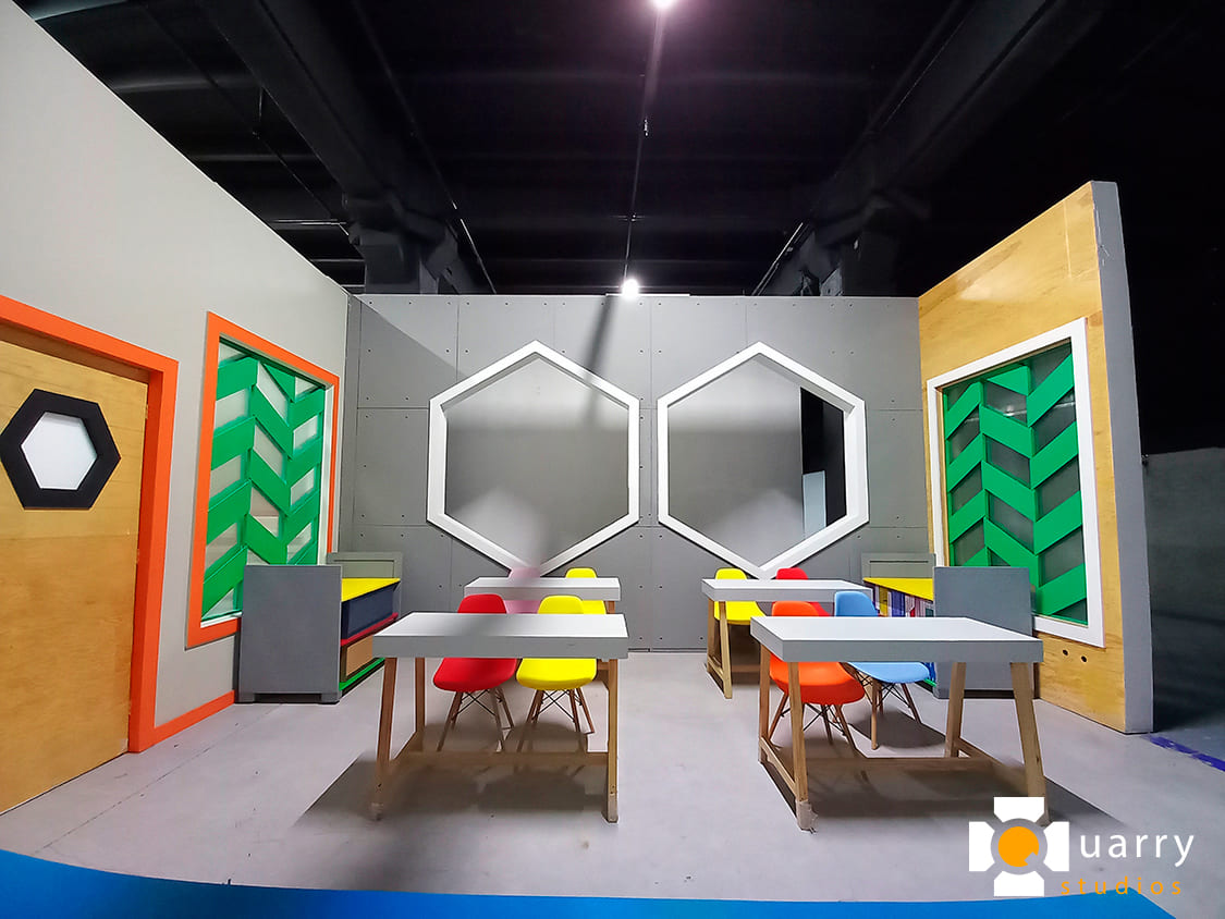 Conformado por 3 módulos: Aula de clases, pasillo/escalera/lockers y sala, todos con los props necesarios listos para filmar. ¡Conócelo!